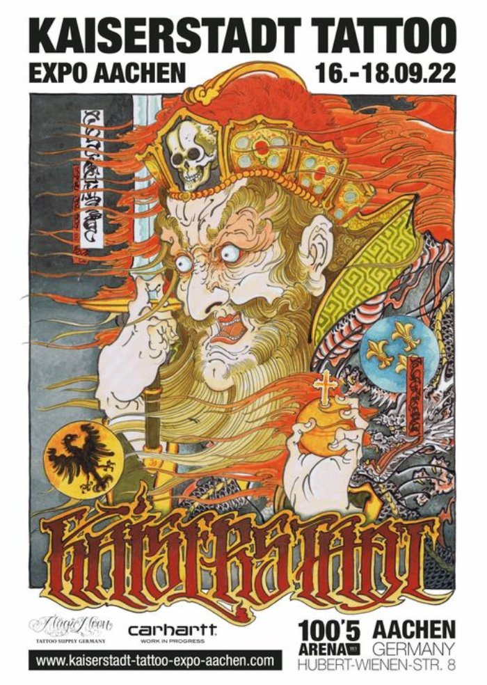 The Kaiserstadt Tattoo Expo 2026 takes place 18–20 September 2026 in Aachen, Germany (100’5 Arena).