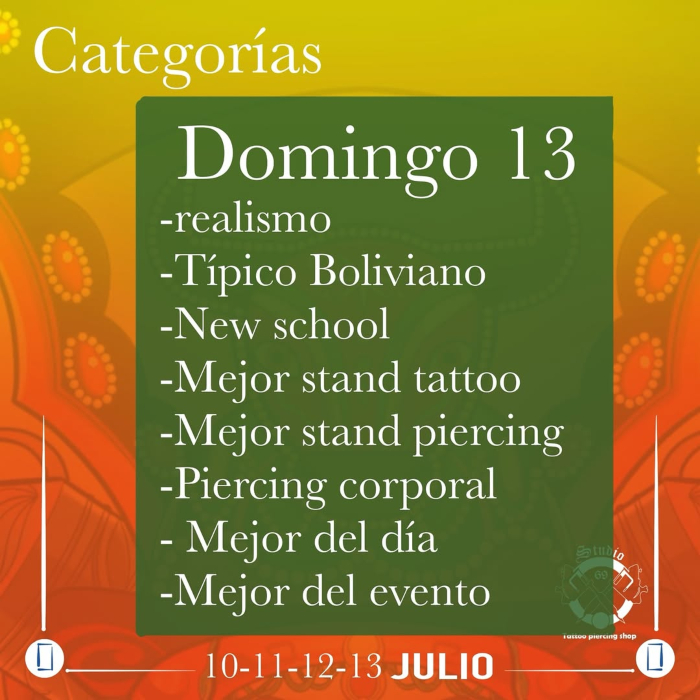 With all the spectacle of the competitions, the first national competition of Bolivian tattoo artists will be held on the first day, featuring a fusion of three artists with Bolivian themes.