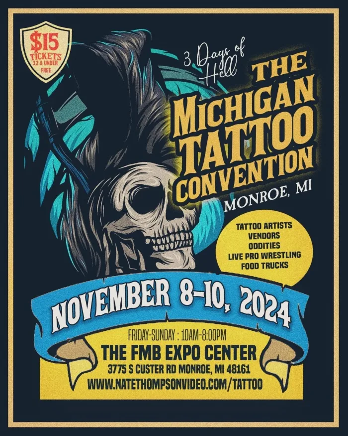 The Michigan Tattoo Convention 2025 is returning to Monroe, MI on November 7-9, 2025! Save the Date!