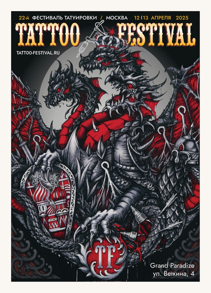 Welcome to the 22nd of Moscow Tattoo Festival on April from 25 to 26, 2026 at Grand Paradize, Russia.