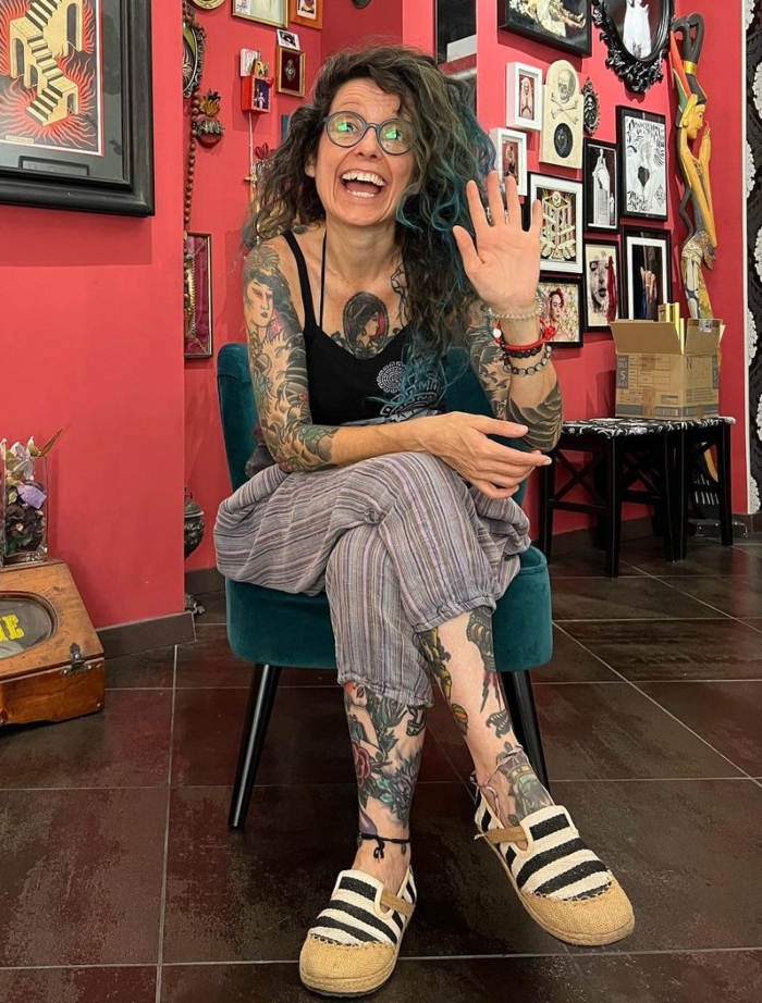Hi, I’m Anita. I’ve been a tattoo artist for about twenty years, but I started drawing on the walls of my house when I was a child. Growing up, I found an interest in the history of art, and eventually I graduated in painting from the Academy of Fine Arts in Venice. I’ve been living in Turin since 2012, where I opened my Namaste Tattoo Studio.